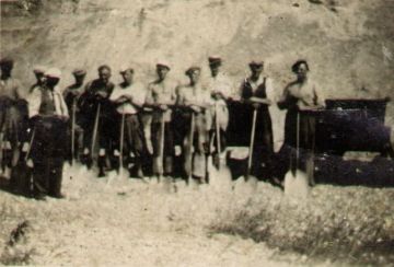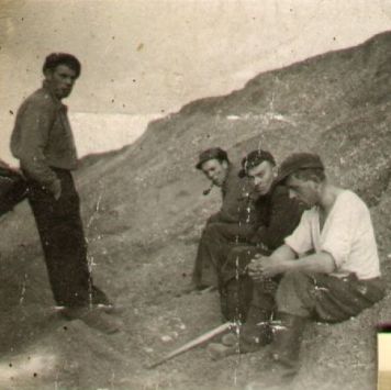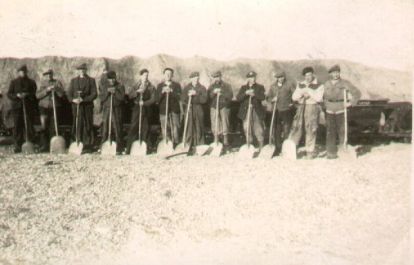 Grusgravning ved Klim Strand under besættelsen. Gruset blev transporteret med tipvogne via en til formålet etableret jernbane, der gik fra Klim Strand, vest om den nuværende Klim Skole og videre til Klim Station, hvor gruset blev ladet over i alm. jernbanevogne.